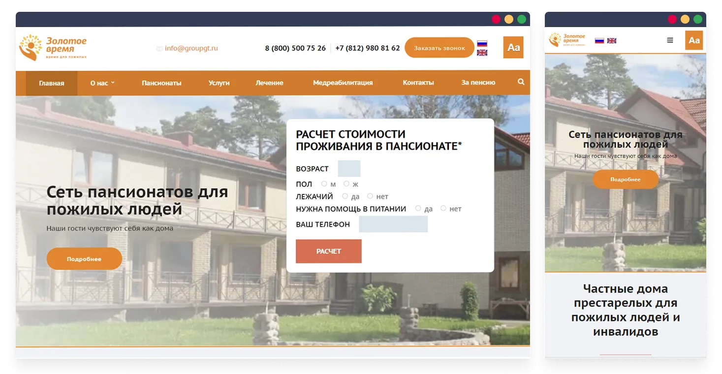 Разработали и внедрили калькулятор заказа расчета стоимости проживания в пансионате с учетом особенностей пожилого человека